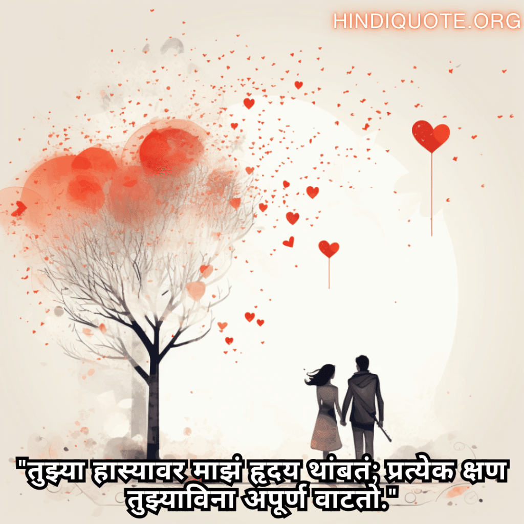 Romantic Quotes In Marathi For Your Crush "तुझ्या हास्यावर माझं हृदय थांबतं; प्रत्येक क्षण तुझ्याविना अपूर्ण वाटतो."