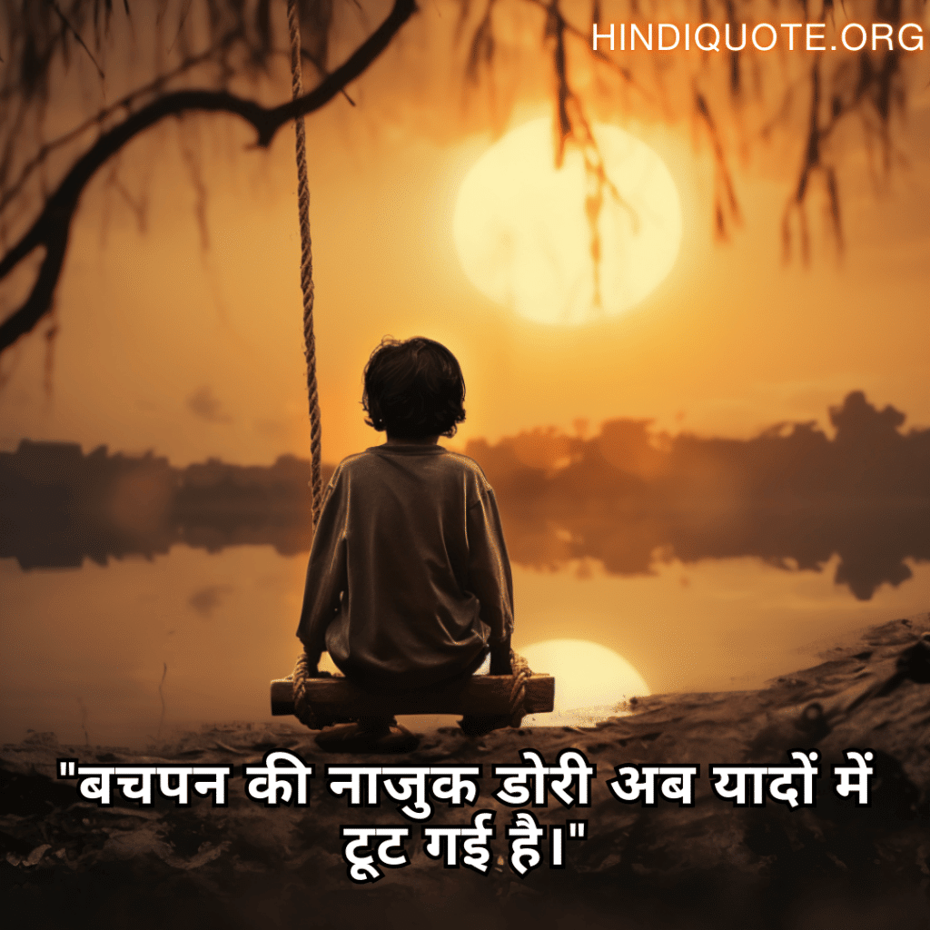 बचपन, जिसमें मासूमियत, उत्सुकता, और आनंद की भरमार होती है, जीवन का एक अनमोल समय है। लेकिन समय के साथ, वो कीमती पल हमारे पीछे छूट जाते हैं और हमारी यादों के कोनों में कहीं खो जाते हैं। उनकी जगह एक खालीपन और यादों का दर्द ले लेता है। ‘Top 10 Sad Quotes In Hindi For The Lost Childhood Memories’ के इस संग्रह में, हम उन खोई हुई यादों को फिर से याद करने और उन्हें जीवंत करने का प्रयास करते हैं।